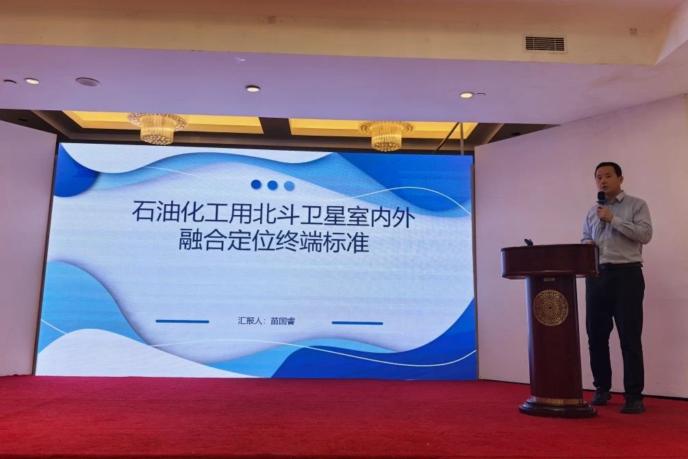 新銳科創(chuàng)(湖北)科技有限公司負(fù)責(zé)人對(duì)牽頭編制的《石油化工用北斗室內(nèi)外融合定位終端》團(tuán)體標(biāo)準(zhǔn)進(jìn)行介紹。