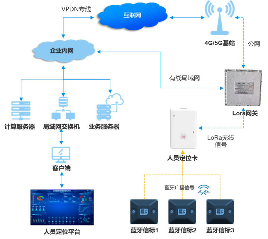 員工佩戴的定位設備,具備接收藍牙信號和通過LoRa網絡傳輸數據的功能。定位終端具有本質安全防爆認證,適用于冶金廠等危險環境。同時,終端多樣,部分還支持一鍵求救功能,當員工遇到緊急情況時,可及時發出求救信號。